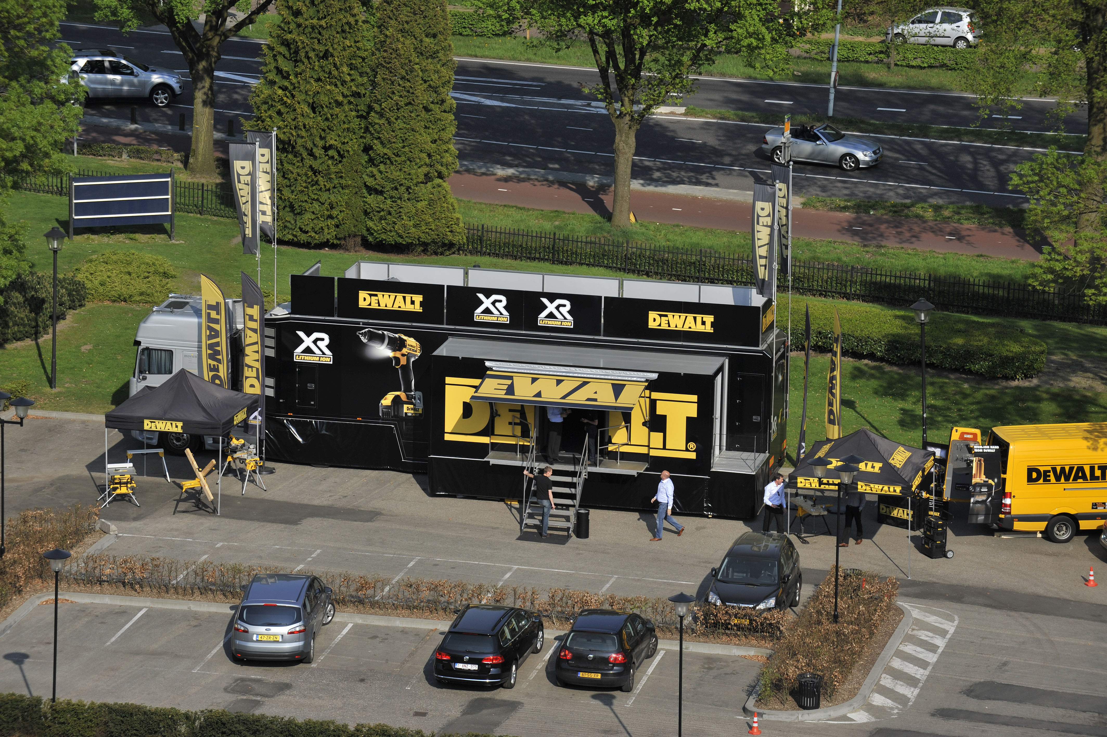 Sometimes, brands are afraid to choose a venue and lose clients because the venue is too far away from some key accounts. So… Why not bring the venue towards the clients? We created a roadshow of 3 weeks, through all Holland and Belgium. The truck was personalizes inside and outside. And the vibes were rough and tough, just like the American style Dewalt represents.