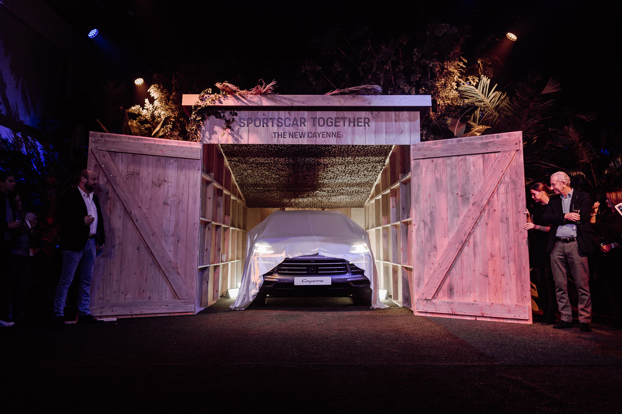 The Cayenne is a special brand within the Porsche family. Keywords : young audience, sports and travel. That's why we created a tropical surf concept, with a cabin in which the reveal took place. We also had VR Experiences and surf professionals explaining the craftsmanship of creating surfboards.